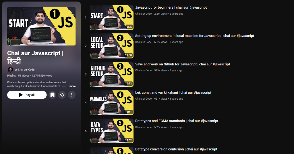 Below are the videos and playlists I followed — organized by topic — along with why each one helped me and how I used them in real projects.